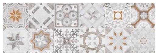 Płytka Concrete Style Patchwork dekor 20x60 to glazura dekoracyjna o matowej powierzchni, której patchworkowy wzór przyciąga uwagę różnorodnością form. Wzory na płytce są ułożone w charakterystyczne moduły z wyraźnie zdefiniowanymi elementami geometrycznymi i rozetami, utrzymanymi w stonowanej palecie kolorystycznej - beże, szarości i biel. Każdy z motywów ma indywidualny charakter, co daje efekt mozaiki, ale w jednolitej tonacji.