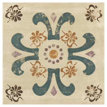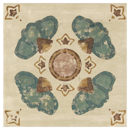 Płytka Verona dekor podłogowy 20x20 to zestaw niewielkich elementów o różnych wzorach i kolorystyce. Każda z dziesięciu płytek prezentuje inny motyw - od geometrycznych linii, poprzez kwiatowe akcenty, aż po stylizowane ornamenty. Ten patchworkowy układ sprawia, że całość nie jest monotonna, a zyskuje na wyrazistości i dynamice. Powierzchnia w satynowym wykończeniu dodaje subtelnego połysku, który nie przytłacza, ale podkreśla fakturę i szczegóły zdobień.