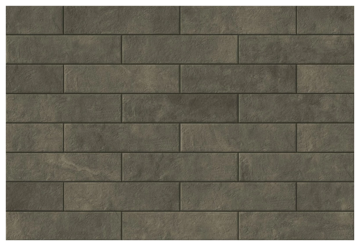 Kolorystyka w odcieniach grafitu pozwala na łatwe dopasowanie do wielu aranżacji. Jest to barwa neutralna, ale jednocześnie na tyle głęboka, by nadać wnętrzom wyrazistości i charakteru. Układ prostokątnych płytek w formacie 7,4x30 cm tworzy rytmiczny wzór, który ze względu na wymiar stanowi ciekawy balans między minimalistyczną jednorodnością a dynamicznym detalem.