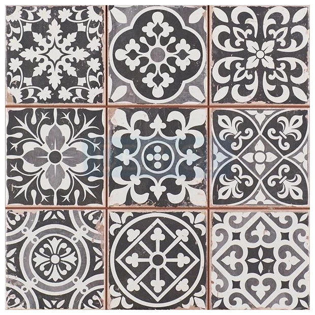Płytka podłogowa FS Faenza-N to propozycja dla tych, którzy cenią niebanalne wzory w klasycznym, stonowanym wydaniu. Wzory na poszczególnych płytkach są różnorodne, co pozwala na ciekawą i niepowtarzalną układankę. Kolorystyka utrzymana w odcieniach szarości, bieli oraz czerni daje możliwość stworzenia przestrzeni z wyraźnym, ale jednocześnie stonowanym motywem. Matowa powierzchnia nadaje jej subtelności, a każda płytka ma swój wyjątkowy, lekko postarzały charakter.