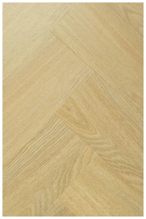 Jasny, naturalny odcień drewna z wyraźnym rysunkiem słojów. Powierzchnia wygląda jak klasyczny dąb - stonowana, bez przesadnych kontrastów, co daje spójne tło dla różnych wystrojów wnętrz. Format wąskich desek dobrze sprawdza się w kompozycjach układanych w jodełkę, gdzie detal i rytm ułożenia nabierają znaczenia.