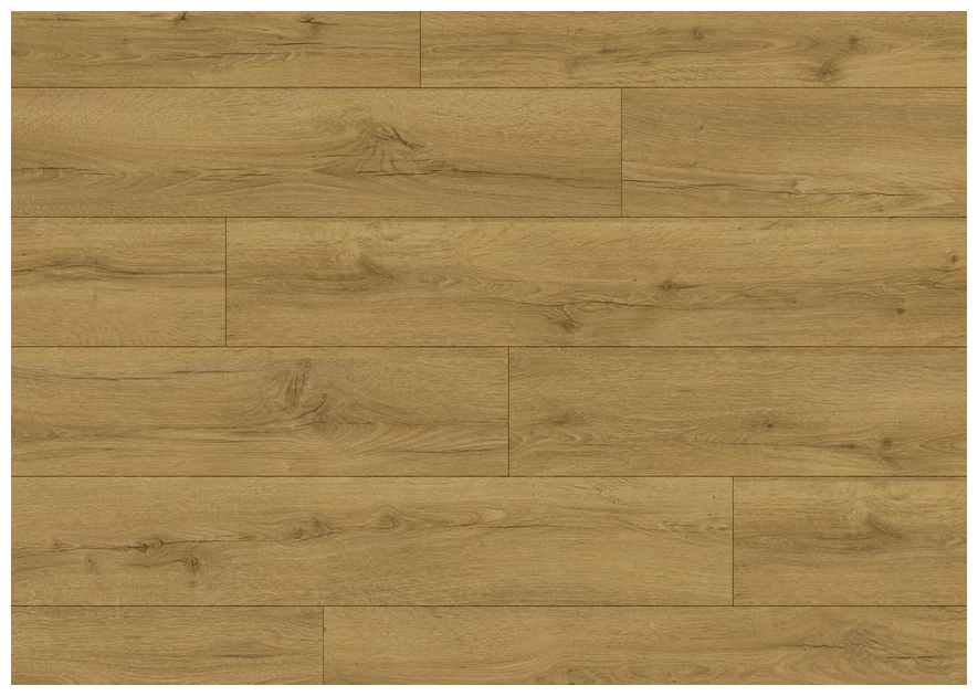 Classic Dąb Miodowy brązowy CLM5792 prezentuje się jako ciepły, miodowy odcień drewna z czytelnym rysunkiem słojów i sporadycznymi sękami. Powierzchnia wygląda jak matowa, lekko strukturalna powierzchnia imitująca deskę dębową - zróżnicowanie słojów dodaje autentyczności bez przesady. Kolor jest wystarczająco uniwersalny, by pasować do mieszkania z jasnymi detalami, ale też z ciemniejszymi meblami.
