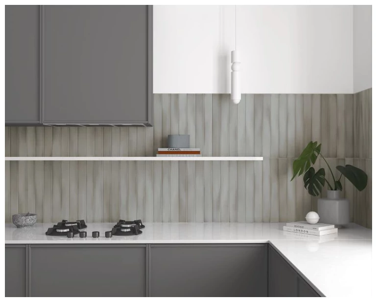 Massimo Skylon Grey to płytka ścienna o wymiarach 5x40 cm, której formę zdecydowanie wyróżnia prostokątny, wydłużony kształt przypominający cegiełkę. Kolor szarości, widoczny na powierzchni, nie jest jednolity - obserwuje się subtelne różnice tonów, co wpływa na naturalny charakter wykończenia.