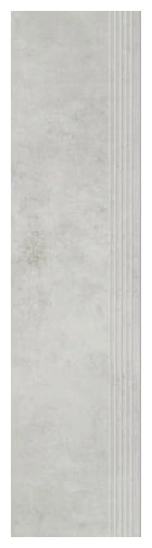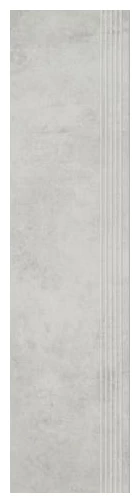 Stopnica gresowa Scratch Bianco od producenta Paradyz to element o wymiarach 29,8x119,8 cm, utrzymany w minimalistycznym, betonopodobnym stylu. Matowa powierzchnia pozwala uzyskać nowoczesny, industrialny charakter, a jednocześnie wykończenie nie odbija nadmiernie światła. Powierzchnia w kolorze jasnego betonu jest neutralna, co ułatwia dopasowanie do różnych aranżacji. Po jednej stronie płytki znajduje się wyraźne ryflowanie, które pełni funkcję praktyczną, wyróżniając stopnicę wizualnie i funkcjonalnie.