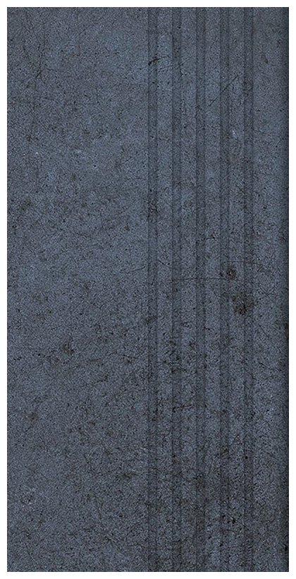 Product prezentowany to Torano Anthrazite mat stopnica rektyfikowana 29,6x59,8x0,8 z kolekcji Torano, wyprodukowana przez Tubadzin. To gres stopnica o powierzchni matowej, która imituje beton. Nie jest to powierzchnia błyszcząca, co sprawia, że produkt ma stonowany charakter, minimalizując odbicia światła. Stopnica gresowa betonopodobna zyskuje dzięki temu surowy, ale nowoczesny wygląd.