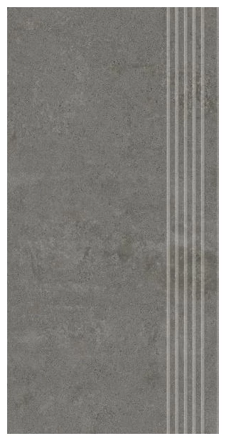 Pure ART Basalt mat stopnica Prosta Nacinana to płytka, która zwraca uwagę swoją surową, betonową estetyką. Jej matowa powierzchnia unika połysku, co zapewnia autentyczny, industrialny efekt. Wzór jest minimalistyczny - całość utrzymana jest w jednolitym, szarym kolorze z delikatną, ale widoczną fakturą przypominającą naturalny beton. Na krawędzi płyty znajdują się subtelne nacięcia, które nie tylko pełnią funkcję użytkową, ale także wprowadzają dodatkowy akcent graficzny, ułatwiający bezpieczne użytkowanie stopnicy.