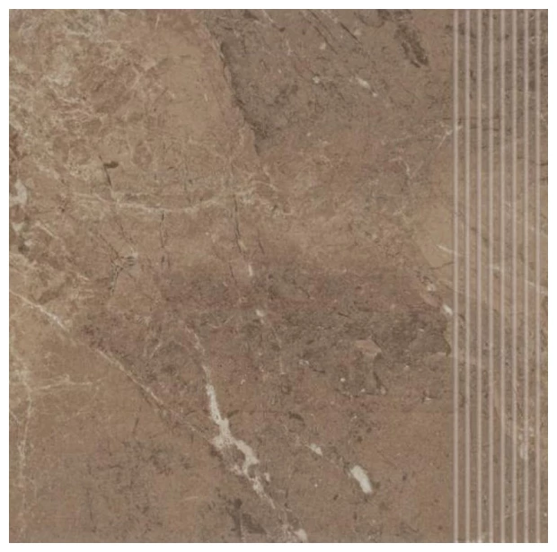 Stopnica gresowa imitująca marmur w odcieniach brązu to propozycja dla tych, którzy chcą uzyskać naturalny wygląd kamienia, ale zachować trwałość gresu. Powierzchnia w odcieniu ciepłego brązu z nieregularnymi liniami i żyłkami idealnie oddaje charakter marmurowych powierzchni, nie będąc jednak zbyt jednolitą czy monotonną. Matowa struktura dodatkowo podkreśla autentyczność, oferując powierzchnię o przyjemnym, nieświecącym wykończeniu.