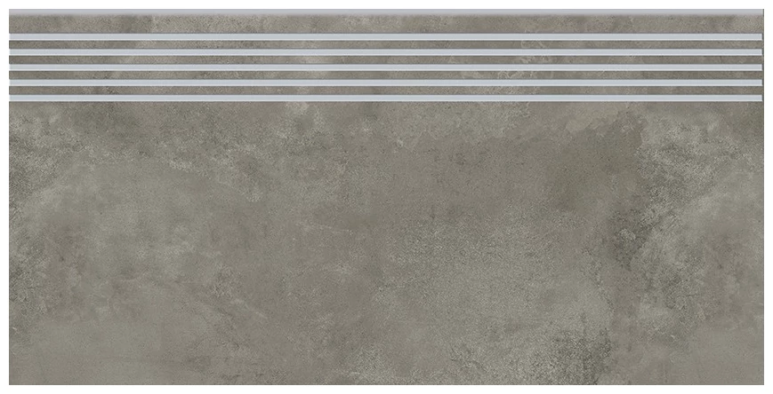 Stopnica gresowa matowa antypoślizgowa imitująca beton to produkt o wyraźnym, szarym odcieniu, który przypomina naturalne powierzchnie betonowe. Kolory mają zróżnicowaną intensywność, co nadaje płytce autentyczny, niejednolity wygląd. Dzięki temu ściera się efekt gładkiej jednolitej powierzchni, zastępując go bardziej surowym i praktycznym wzorem. Na górnej części stopnicy znajdują się równoległe, wąskie paski, które spełniają funkcję antypoślizgową, a jednocześnie wpisują się w nowoczesny styl aranżacji.