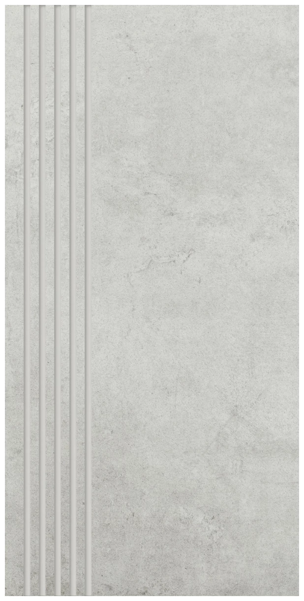 Pionowe nacięcia z jednej strony stopnicy są widoczne i spełniają funkcję praktyczną, pomagając w zachowaniu stabilności kroku. To ciekawe zabezpieczenie podnosi poziom bezpieczeństwa, zwłaszcza przy zastosowaniach wymagających antypoślizgowości. Z kolei rozmiar 29,8x59,8 cm jest wygodny do montażu na schodach o standardowych wymiarach, co czyni produkt uniwersalnym w codziennym zastosowaniu.