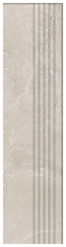 Grand Cave White to stopnica gresowa utrzymana w modnym, neutralnym odcieniu bieli, z wyraźnie zaznaczoną fakturą kamienia. Jej matowa powierzchnia eliminuje niepotrzebne refleksy, co czyni ją praktycznym wyborem dla przestrzeni o dużym natężeniu światła. Na stope wyraźnie widoczne są subtelne żyłkowania imitujące naturalny kamień, a specjalnie zaprojektowane, równoległe nacięcia pełnią funkcję zwiększającą bezpieczeństwo.
