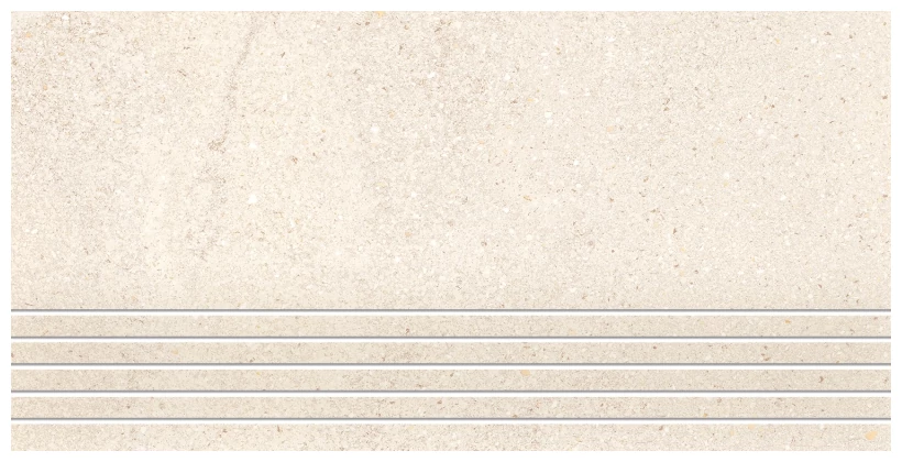 Lavish mat stopnica podłogowa to propozycja dla osób, które cenią stonowaną estetykę i naturalny wygląd gresu. Kolorystyka utrzymana jest w jasnej, kremowej barwie z drobnym, kamiennym wzorem. Dzięki temu stopnica gresowa matowa kamieniopodobna prezentuje się schludnie i nie przytłacza przestrzeni, co sprzyja harmonijnemu uzupełnieniu różnych aranżacji wnętrz. Powierzchnia jest matowa, co sprawia, że całość zachowuje lekkość i neutralność wizualną.