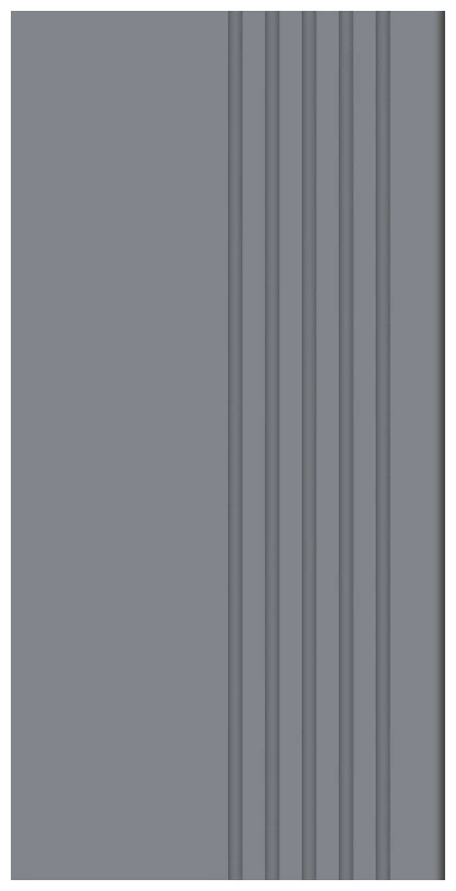 Geometria produktu to klasyczna prostokątna forma o wymiarach 29,6x59,8 cm, wzbogacona o charakterystyczne ryflowanie na jednej stronie. Te rowki mają swoje praktyczne zastosowanie, wpływając na lepszą przyczepność pod stopą i zwiększając bezpieczeństwo.