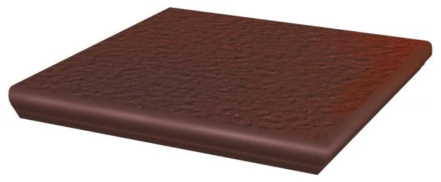 Cloud Brown stopnica narożna z kolekcji Cloud od producenta Paradyz to produkt o wyraźnym, ciemnym brązowym odcieniu. Powierzchnia matowa z wyraźną, strukturalną fakturą nadaje elementowi surowy, ale przemyślany charakter. Stopnica klinkierowa mrozoodporna prezentuje matowy, lekko chropowaty front, który z jednej strony zapewnia estetykę, z drugiej określa praktyczne cechy użytkowe. Ta specyficzna struktura nie tylko jest widoczna, ale też odczuwalna pod palcami, wskazując na solidność materiału. Krawędź zakończona jest delikatnym zaokrągleniem lekko kapinosowym, co poprawia funkcjonalność i minimalizuje ryzyko uszkodzeń.