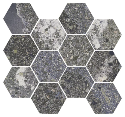 Aparici Lithops Lipan Stamp Natural Hexagonal mozaika 28x30 - szara mozaika gresowa w stylu industrialnym