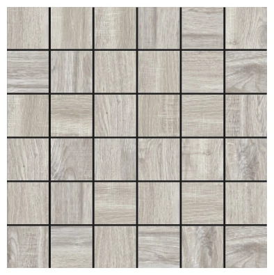 Camper ASH 5x5 mozaika 29,75x29,75 to gres mozaika o powierzchni matowej, która oddaje surowość drewna w stonowanej, szarej tonacji. Ta kolorystyka nadaje się świetnie do wnętrz, gdzie poszukujemy naturalnego, a zarazem nieprzesadzonego efektu rustykalnego. Każda mała płytka stanowi fragment większego wzoru imitującego strukturę drewna, co sprawia, że powierzchnia zyskuje na autentyczności i głębi. Nie jest to monotonna jednolita płytka - różnice w odcieniach oraz słoje drewna wprowadzają subtelne zróżnicowanie, które ożywia przestrzeń.