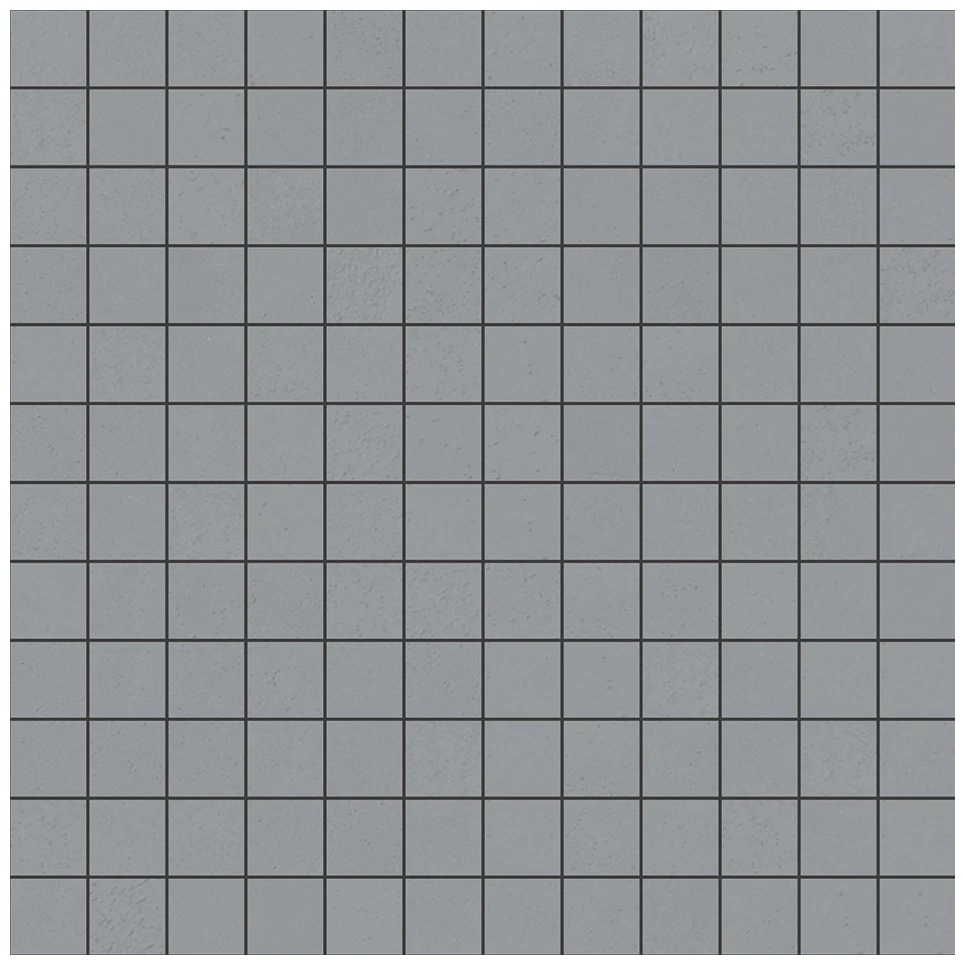 Produkt Studio Grey 2,5x2,5 to mozaika o wymiarach całkowitych 29,75x29,75 cm. Składa się z wielu małych płytek o boku 2,5 cm, ułożonych w regularnej siatce.