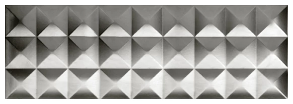 Płytka ma mocno wyczuwalną, trójwymiarową strukturę, która podkreśla jej dekoracyjny charakter. To nie jest jednolity prostokąt - na powierzchni widoczne są geometryczne wypukłości i zagłębienia, które przyciągają oko i nadają ścianie nowoczesnego wyglądu. Ta struktura podkreśla oryginalność i nieprzeciętność samego wzoru.