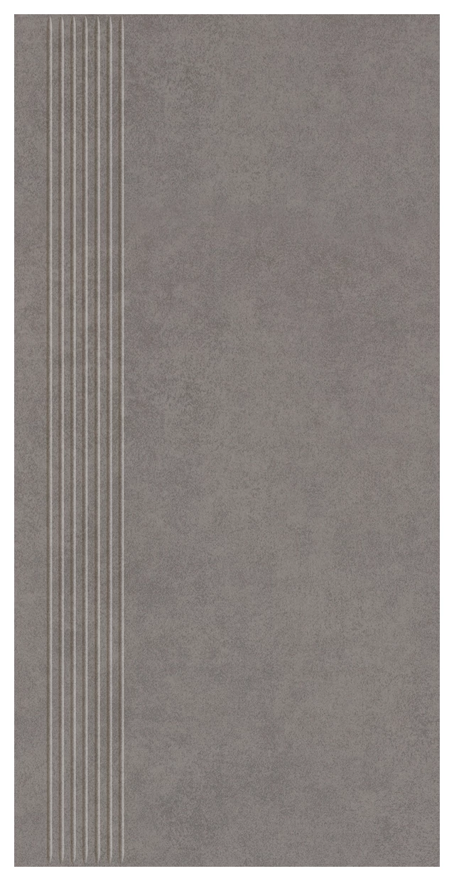 Stopnica gresowa Intero Grys o wymiarze 29,8x59,8 cm wyróżnia się rutynowym, ale dobrze przemyślanym projektem wizualnym. Matowa powierzchnia w stonowanym, szarym odcieniu doskonale wpisuje się w różnorodne aranżacje tarasowe, gdzie liczy się trwałość i funkcjonalność. Na jednej krawędzi ułożono sześć równoległych, wąskich ryflowań - to detal, który nie tylko wizualnie dzieli powierzchnię, ale przede wszystkim zwiększa przyczepność.