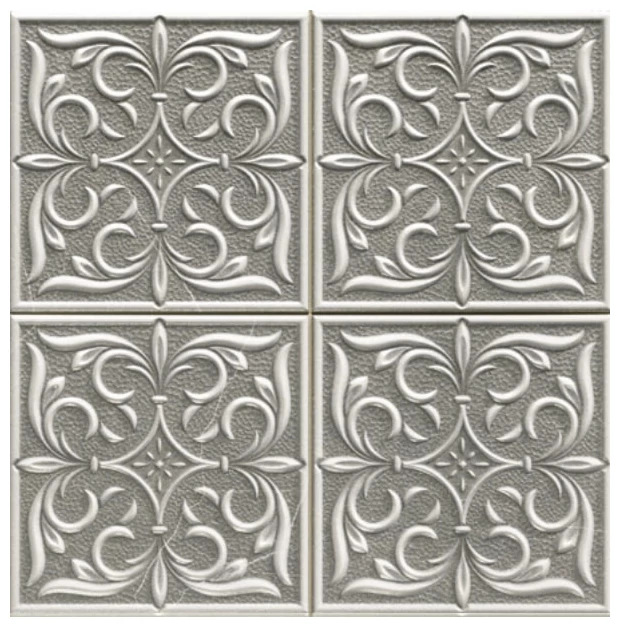 Muse Grey LIS to szary gres z ornamentem, który charakteryzuje się dużym formatem 33x33 cm i matową, strukturalną powierzchnią. Jego wzór opiera się na precyzyjnie wyprofilowanych elementach dekoracyjnych, które nadają mu wyraźnie trójwymiarowy charakter. Dzięki temu powierzchnia nie jest gładka, lecz wyraźnie wyprofilowana, co wpływa na estetyczny odbiór i lekko surowy, ale uporządkowany efekt wizualny.