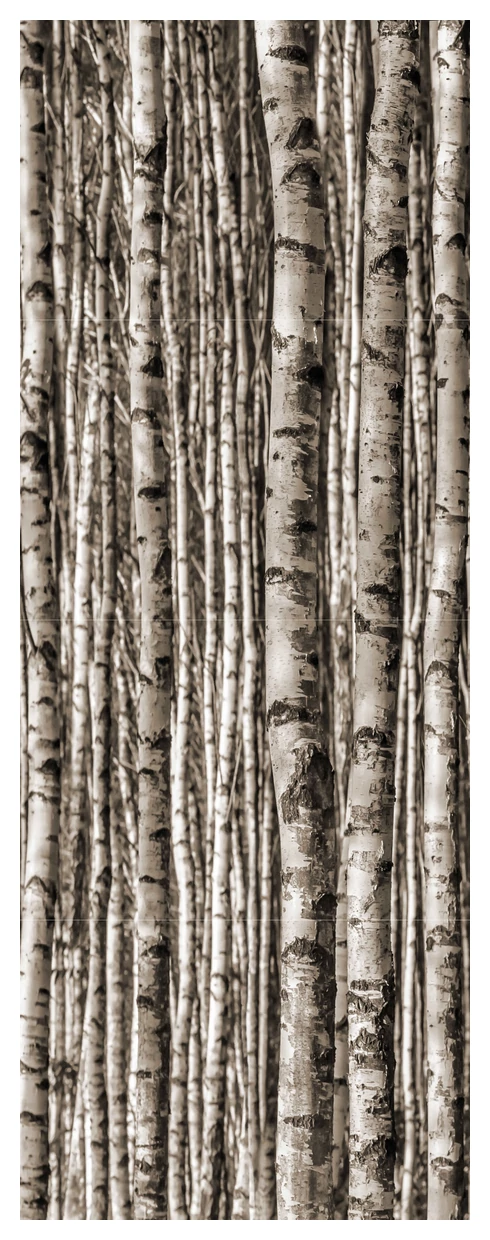 Birch dekor to propozycja z kolekcji Epoxy producenta Tubadzin, która od razu przyciąga uwagę. Kafelki przedstawiające las brzozowy z charakterystycznymi pniami drzew wyglądają bardzo realistycznie. To nie jest klasyczne drewno - jest tu dużo szczegółów i kontrastów oddających fakturę kory. Delikatna gra cieni i jasne, naturalne barwy tworzą głęboki efekt wizualny. Powierzchnia jest błyszcząca, co dodatkowo podkreśla detale i nadaje całości nowoczesnego wyrazu.