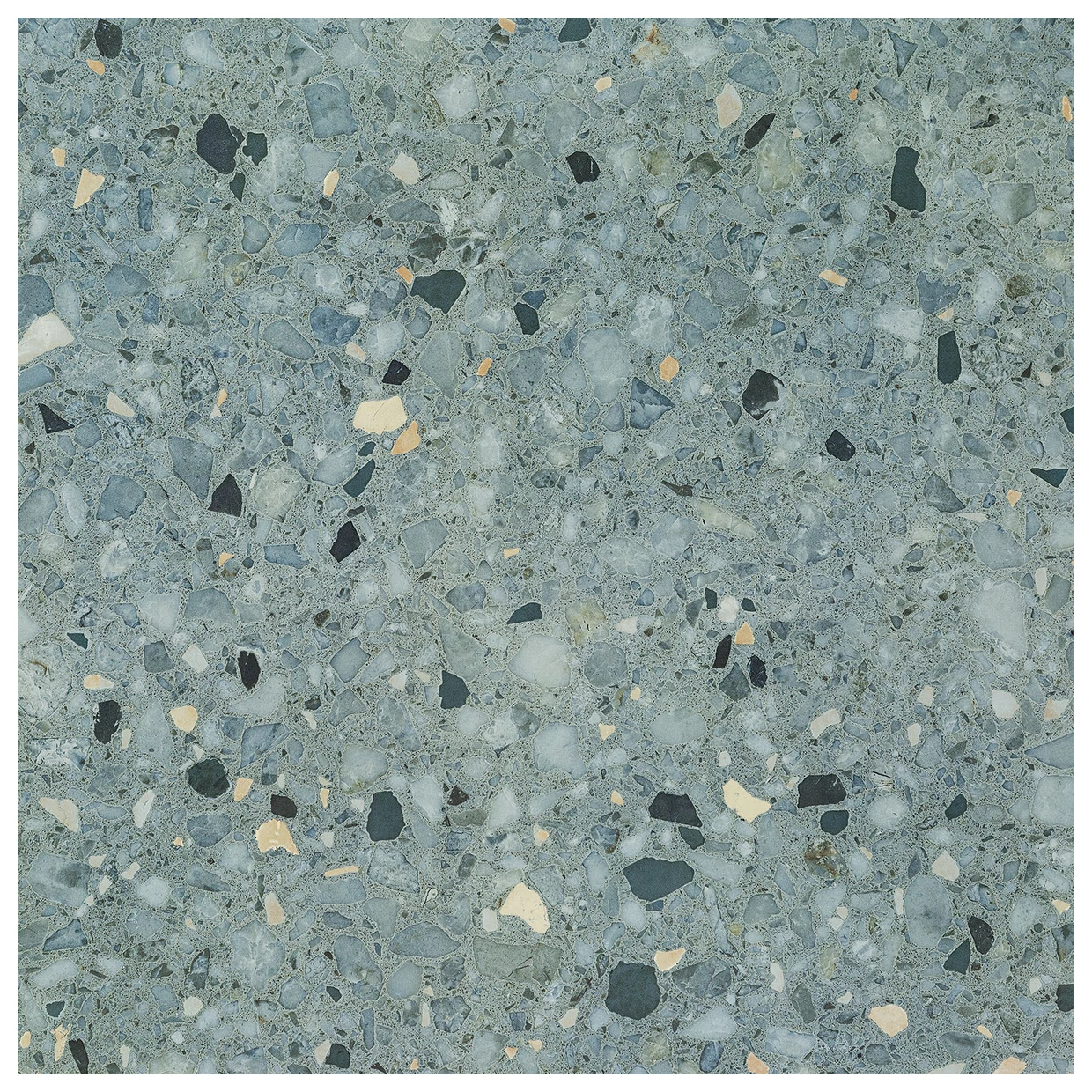 Macchia Blue to gres o wielkoformatowych wymiarach 59,8x59,8 cm, który od razu zwraca uwagę dzięki swojej wyraźnej strukturze. Na matowej powierzchni widoczne są różnorodne, nieregularne elementy w odcieniach niebieskiego, szarości oraz beżu. To technicznie staranne połączenie kolorów i faktur daje podłodze charakter, który nie jest ani monotematyczny, ani przesadnie krzykliwy. Matowa powierzchnia sprawia, że płytka nie odbija światła, co zwiększa komfort użytkowania i ogranicza widoczność śladów.