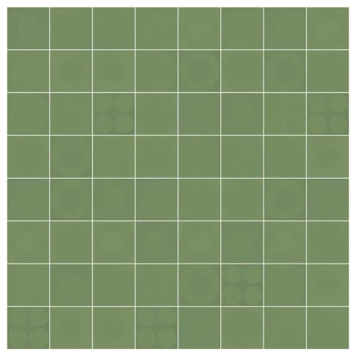 Ta płytka ścienna to intensywny, zielony kolor, który nie jest nachalny, ale zauważalny. Matowa powierzchnia ogranicza odbicie światła, dzięki czemu płytka nie męczy wzroku. Podstawowa forma jest prosta, jednak jest na niej obecna subtelna struktura 3D w postaci delikatnego koła, które można niemal wyczuć pod palcami. To nie jest standardowa gładka płytka - struktura dodaje jej indywidualności i nowoczesnego charakteru.