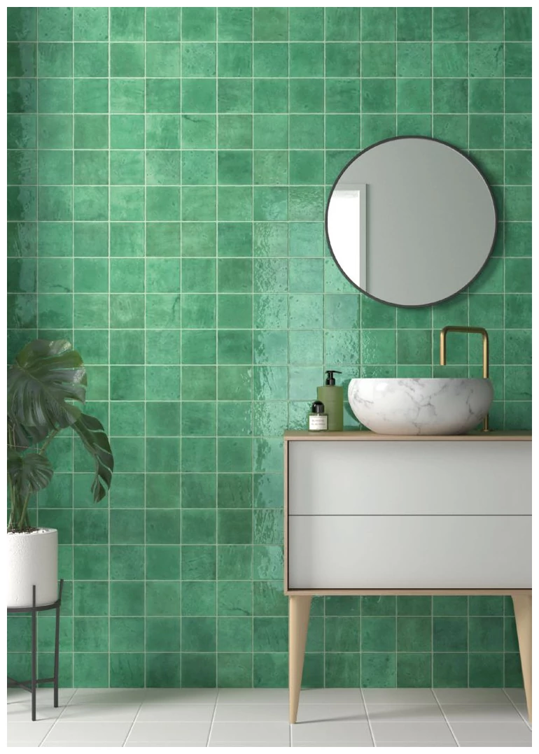 Equipe Menorca Lake płytka ścienna 10x10 (31621) - zielona glazura strukturalna łazienkowa i kuchenna