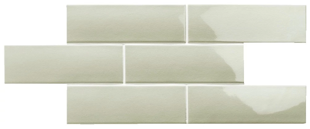 Blask powierzchni i neutralny, zielonkawy odcień pozwalają wkomponować ją zarówno w nowoczesne, jak i bardziej tradycyjne wnętrza. Mogą z nią dobrze kontrastować zarówno jasne, jak i ciemniejsze elementy wyposażenia. Warto jednak pamiętać, że ze względu na formę cegiełki płytki te najlepiej prezentują się na większych powierzchniach, gdzie można docenić ich wzór i efekt wizualny.
