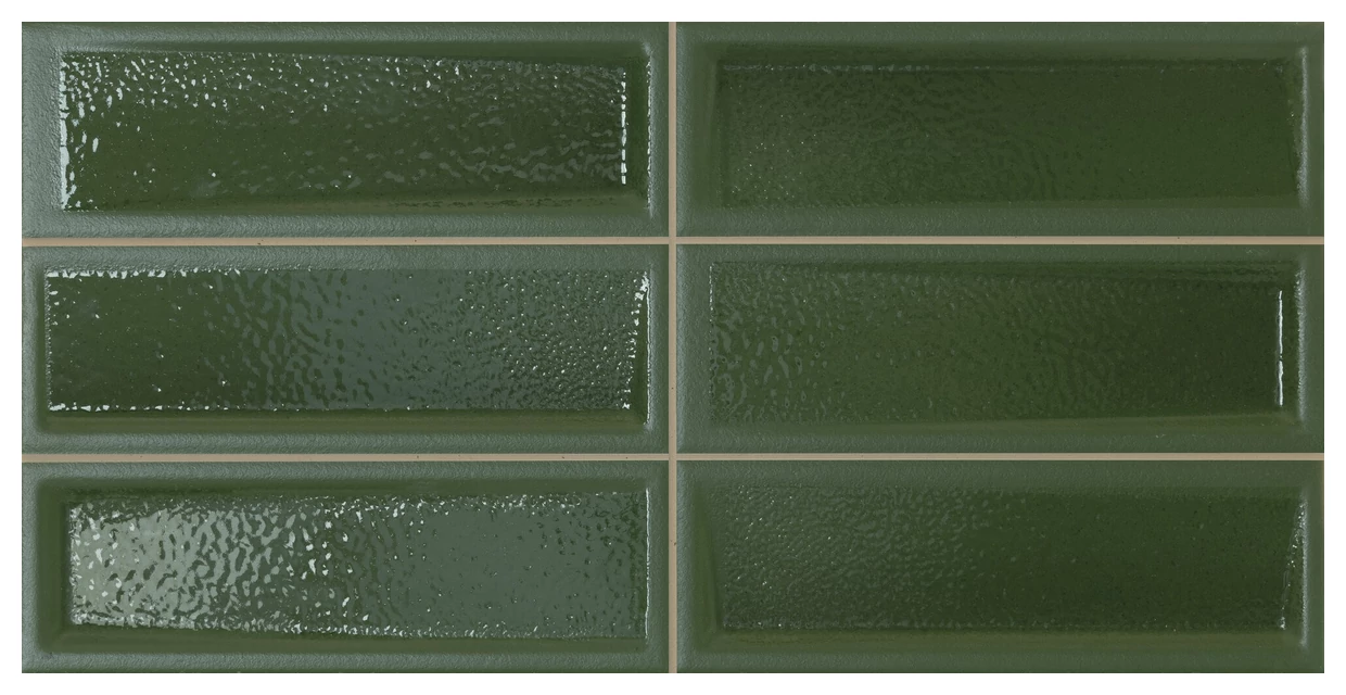 Zielona glazura w formie cegiełki - prostota i surowa struktura
