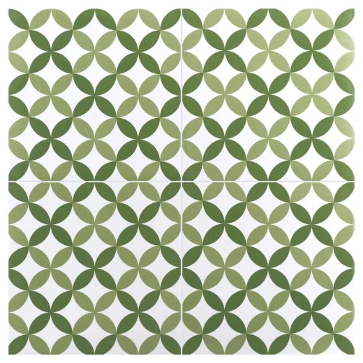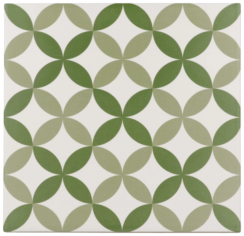 Te kwadratowe płytki o wymiarze 20x20 cm charakteryzują się pięknym zielonym kolorem, który doda energii i świeżości każdemu pomieszczeniu. Ich matowe wykończenie powierzchni oraz unikalna struktura patchwork stworzą efektowny dekor, przyciągający wzrok i podnoszący walory estetyczne każdego wnętrza.