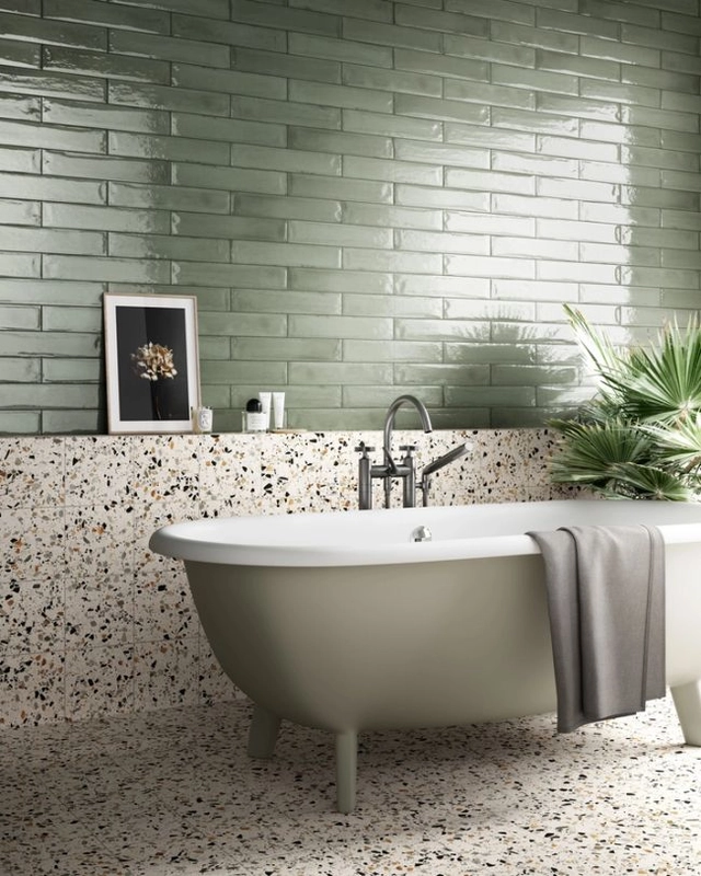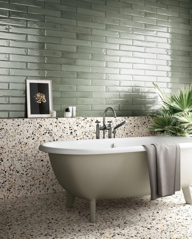 Delconca Frammenti Verde Acqua Brick płytka ścienna 7.5x40 - zielona płytka w formie cegiełki