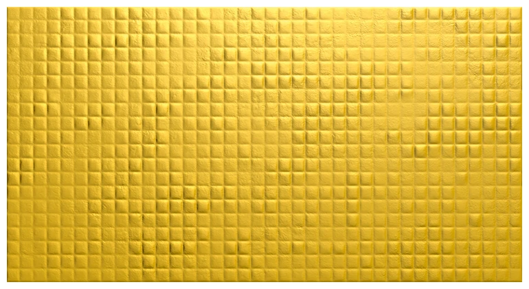 Brixton Gold Cubic dekor 31,7x59,5 to glazura dekoracyjna o zdecydowanie charakterystycznym, złotym odcieniu, który przyciąga wzrok od pierwszego spojrzenia. Płytka ma matową, ale jednocześnie strukturalną powierzchnię, dzięki czemu jej tekstura jest zauważalna i wyczuwalna pod palcami. Geometryczny wzór ułożony jest w regularne, małe kwadraty, które tworzą ciekawą mozaikę - efekt trochę surowy, ale uporządkowany.