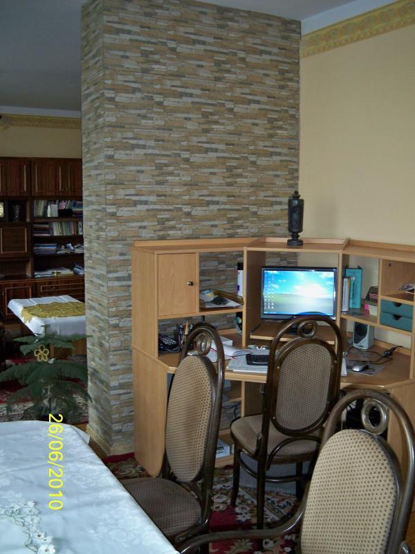 Dwa połączone pokoje rozdzielone częściowo kominem który był spękany a przez to ...